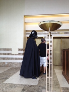 The Heath Ledger Joker scared the bejesus out of me, and I had no problem telling him so! LOL! 🙂 The Darth Vader guy was as tall as the original, and he had that breathing sound with him!