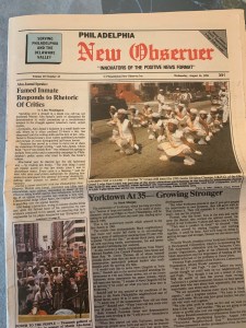 Compiling an anthology about Abu-Jamal, and Linn Washington gave me this article, published shortly after Abu-Jamal escaped the guillotine the first time a quarter of a century ago. It reminds me of dose days, when I was a part-time intern at the National Newspaper Publishers Association and constantly surrounded by Black newspapers. I always had a soft spot for The Philadelphia New Observer because it would print these huge, remarkable 20,000-word Black/Afrikan history supplements by James G. Spady, then a Black Philadelphia living institution.